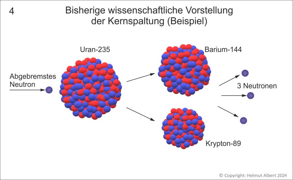 Wie selbstverständlich zeigen heute alle Abbildungen von Kernspaltungen Atomkerne bzw. Urankerne und Spaltprodukte als Kugeln. Eine Kernspaltung lässt sich aber nicht mit einer Atomkugel erklären, die aus zusammengeballten Nukleonen besteht. Ein Nukleon ist kein „Bonbon“! Wie kann eine „Atomkugel“ mit einem Nukleon mehr oder weniger einmal spaltbar sein und ein anderes Mal nicht? U-235 ist spaltbar, U-238 ist nicht spaltbar, Pu-239 ist wieder spaltbar! Die wissenschaftlichen Erklärungen sind höchst fragwürdig. Deshalb ist es Zeit für eine andere Theorie!