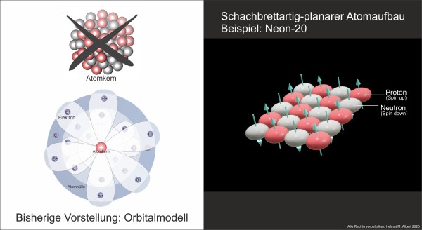 Edelgas Neon-20: Proton = rot, Neutron = grau (H. M. Albert 2025) Der sogenannte Spin ยฝ von Teilchen ist laut Quantenphysik keine reale Drehung der Teilchen, sondern ein โquantenmechanischer, intrinsischer Spinโ. รhnlich wie bei vielen Aussagen in der Quantenphysik soll ein Phรคnomen zwar so sein, wie es beschrieben wird, aber dann doch nicht! Solche paradoxen... Continue Reading →