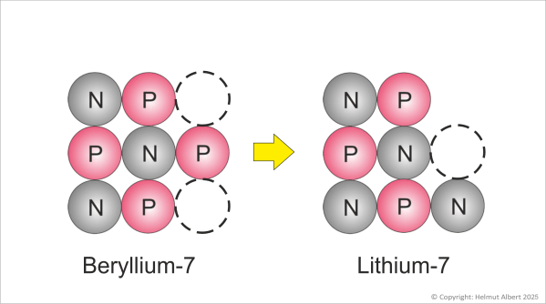 Der Clip in diesem Beitrag zeigt die Umwandlung von Be-7 zu Li-7 auf Basis des schachbrettartigen 2d-Atomaufbaus!